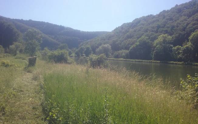 Emplacement pour bivouac au bord de la Meuse, face à la voie verte à laquelle on accede facilement.