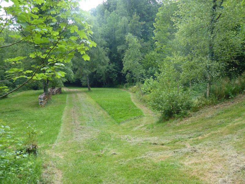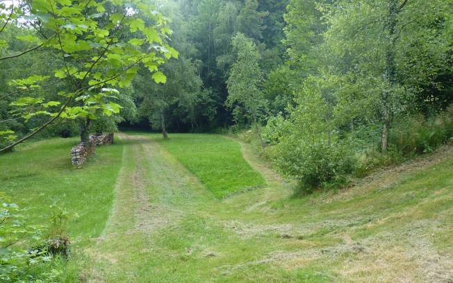 C'est une clairière ombragée sur un terrain plat, en contrebas de la maison.