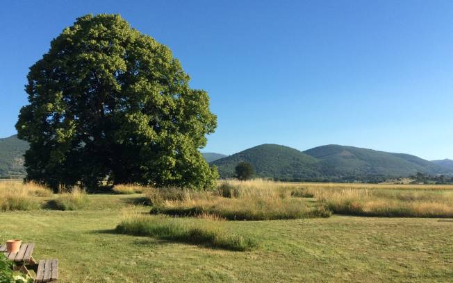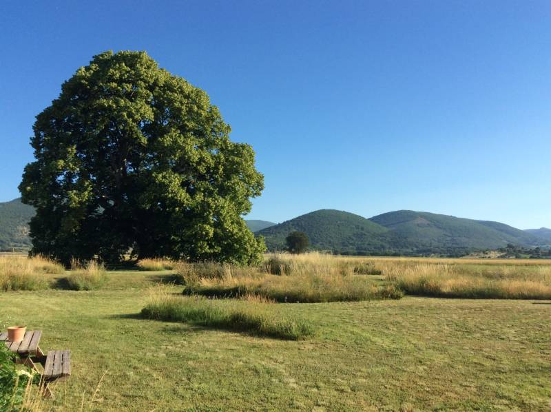 terrain plat, avec vue magnifique à 360°sur les douces collines de Banon.