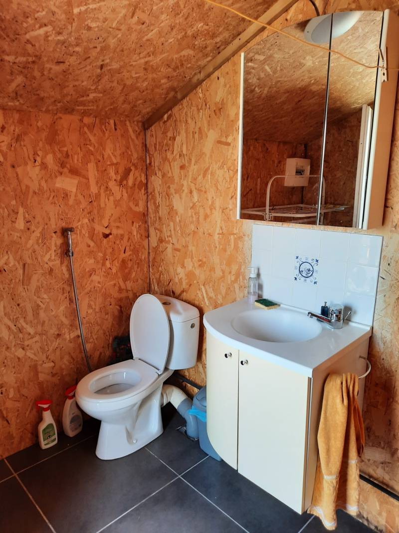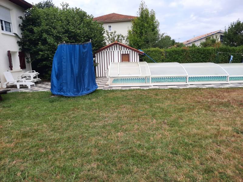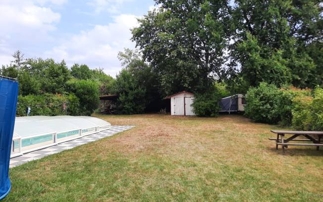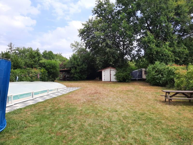 Terrain plat, herbeux, ombrage, piscine, douche extérieure, sanitaire indépendant réfrigérateur micro ondes à disposition. Vous pouvez charger vos portables dans le garage.