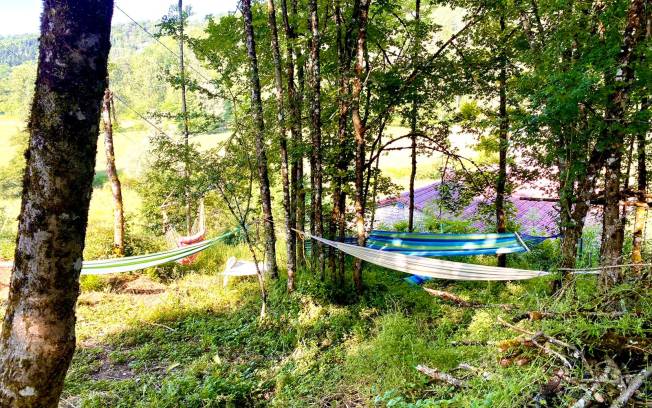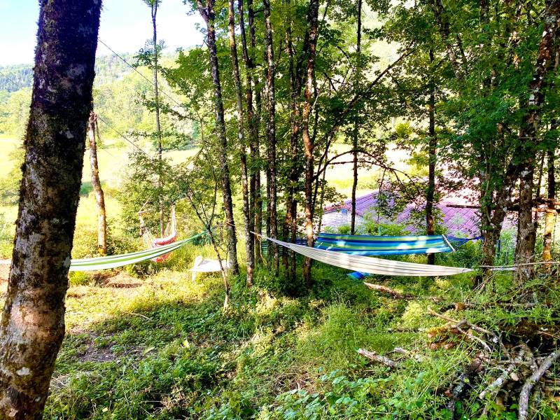 Les emplacements sont bien à l’ombre sous les arbres et au plus près de la rivière du Suran. Ils sont espacé d’au minimum 15m les uns des autres. Nous n’accueillons pas plus de 4 tentes à la fois, afin que chacun profite du lieu.