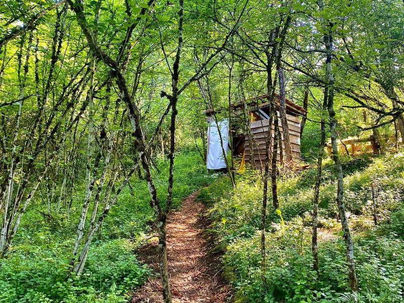 We provide dry toilets and an outdoor cabin shower. We offer solar showers by request (water warmed by sun).