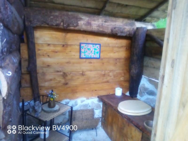 Pour vous est installée une cabane comprenant toilettes sèches et douche chaude.