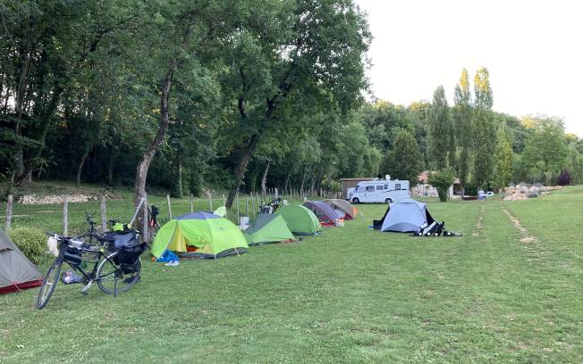 William loue emplacement sur son terrain arboré pouvant accueillir Vélo, camping-car, toiles de tente, motos. A disposition bloc sanitaire "douche WC machine à laver" terrain de boules, voie romaine et piste cyclable à 200 mètres. Commerces à 1 km.