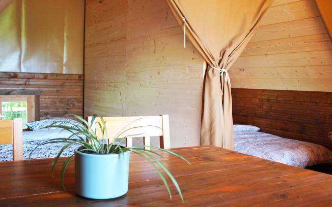 Profitez de votre propre place dans le coin le plus éloigné de notre domaine dans l’une de nos charmantes cabanes toilées. Là, vous pouvez rêver en toute tranquillité au milieu de la campagne depuis votre terrasse privée. Les deux hébergements insolites sont bien équipés avec des vraies chambres à coucher pour un confort de sommeil optimal.