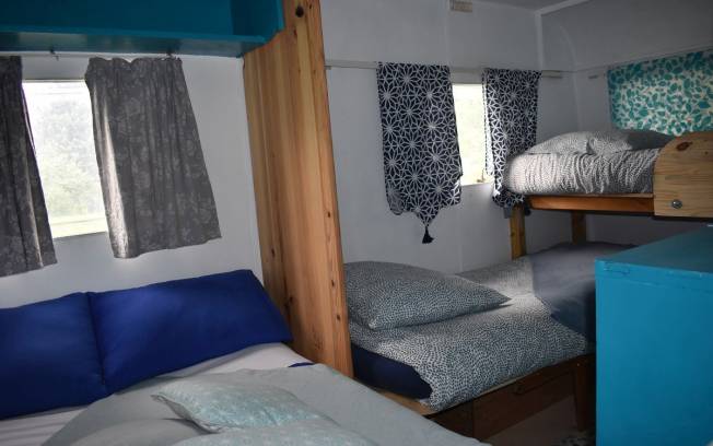 - une caravane où vous attendent des lits préparés pour dormir jusqu'à 4 personnes