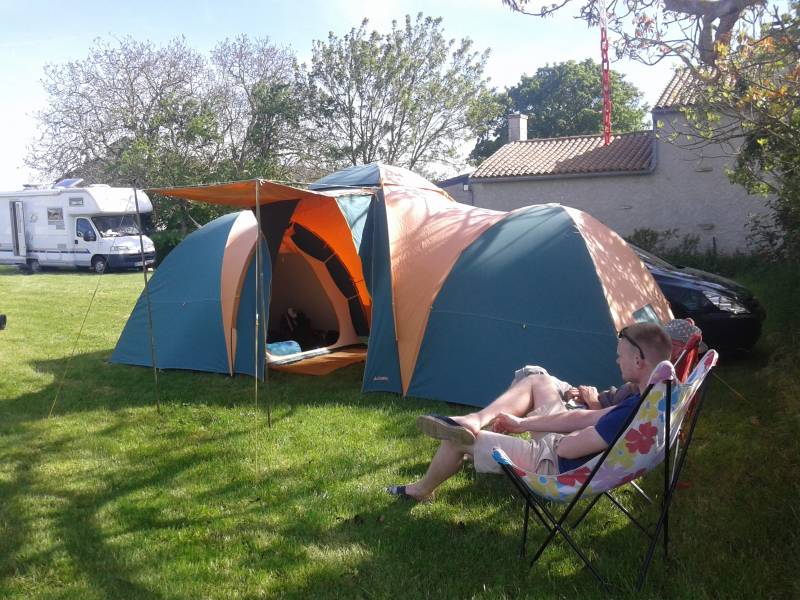 Les emplacements ne sont pas limités en taille. Vous pourrez garder votre voiture près de vous si elle vous sert de placard, ou au contraire l'éloigner si vous voulez l'oublier le temps des vacances. Le terrain est plat, facile d'accès et en herbe. Il y a de l'ombre pour certains emplacements, et du plein soleil pour d'autres. La borne électrique est facile d'accès.