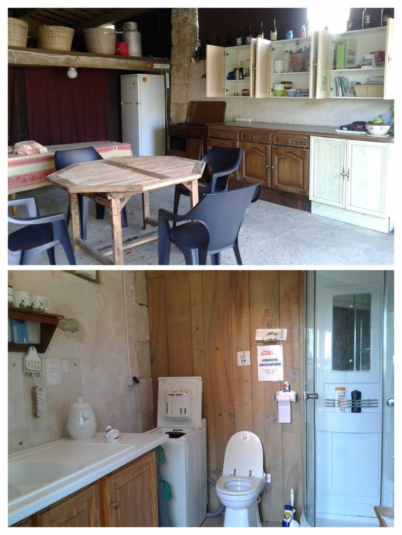 Nous mettrons à votre disposition une salle d'eau en partage et une cuisine totalement équipée : réfrigérateur, congel, gazinière, vaisselle, un barbecue....