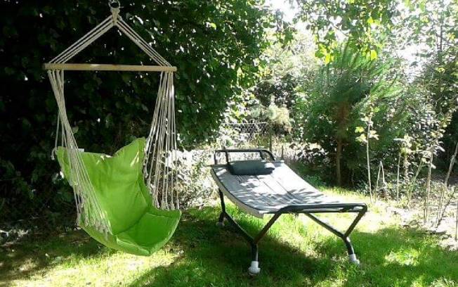 sur la propriété, à votre disposition des chaises longues, parasol et une table à pique nique en bois sur un espace ombragé.