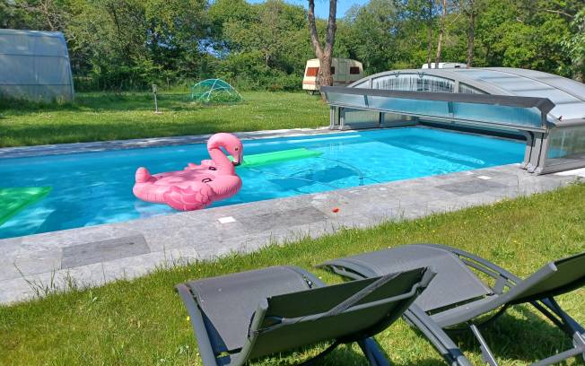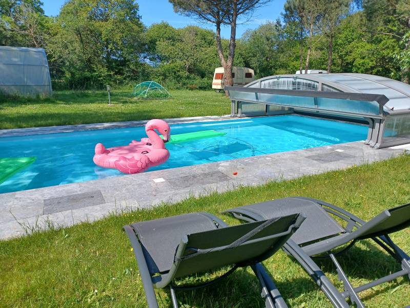 Nous sommes une famille avec 2 enfants, nous vous accueillons sur un terrain de 5 000m² avec piscine, arboré situé à 3km de la mer.