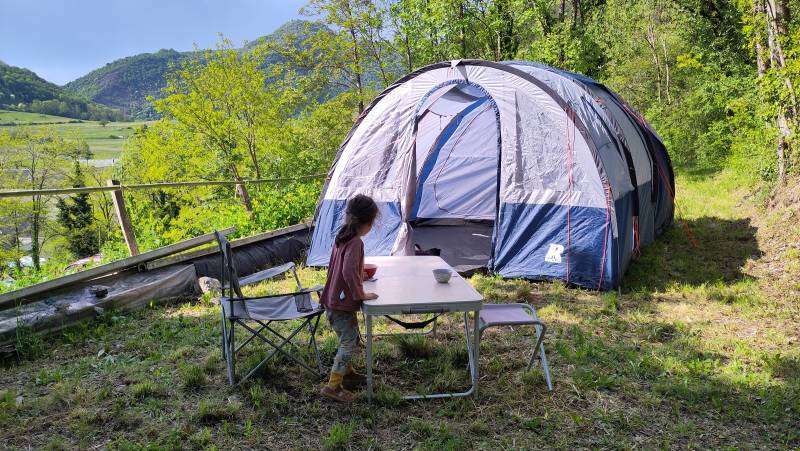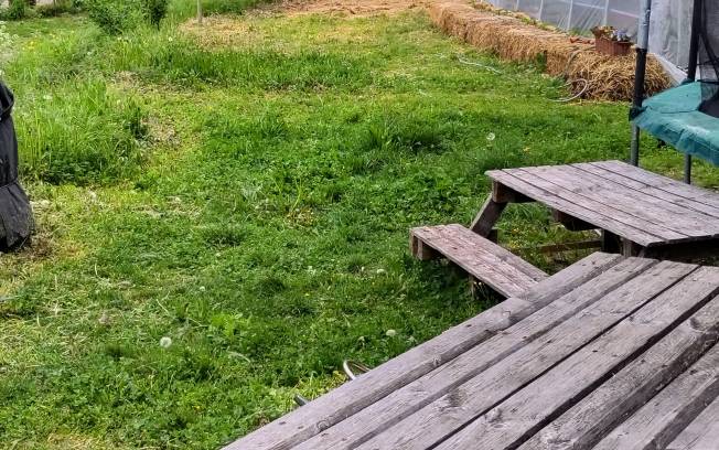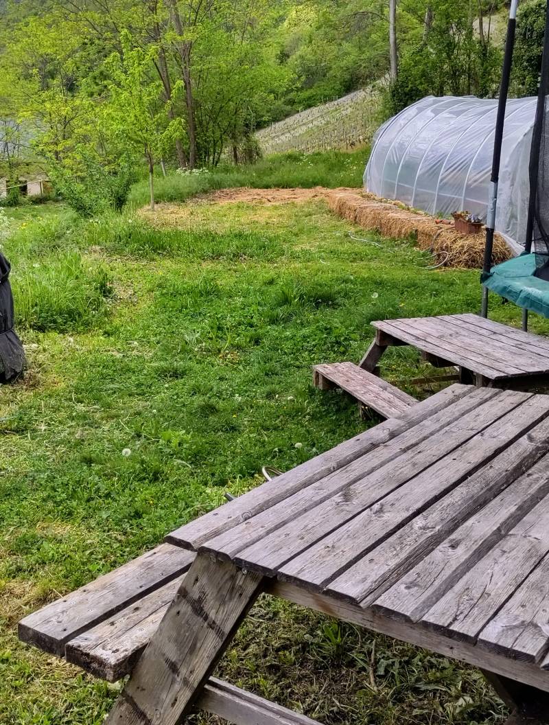 Une table /banc de picnic à dispo, tables de camping et tabouret, chaises longues, et hamac!