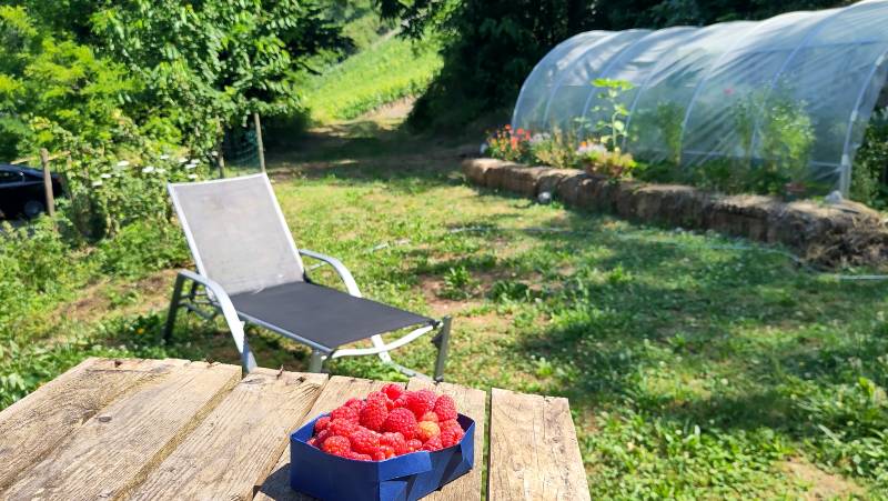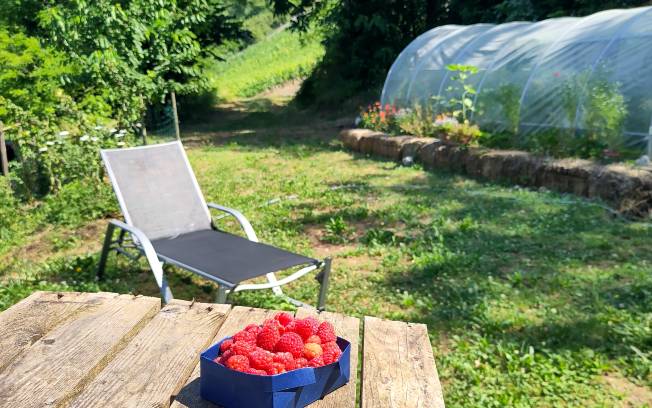 Bienvenue au jardin rêvé! Vous trouverez un espace plat herbeux pour poser votre tente ou un van, et profiter de la vue et des couleurs magnifiques du ciel lors du soleil couchant...