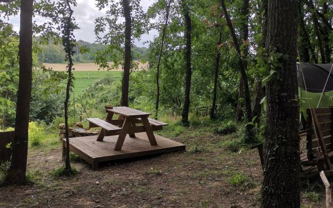 Nichés en pleine forêt, vous aurez une vue panoramique sur la campagne et les champs ce qui fait tout le charme du lieu.