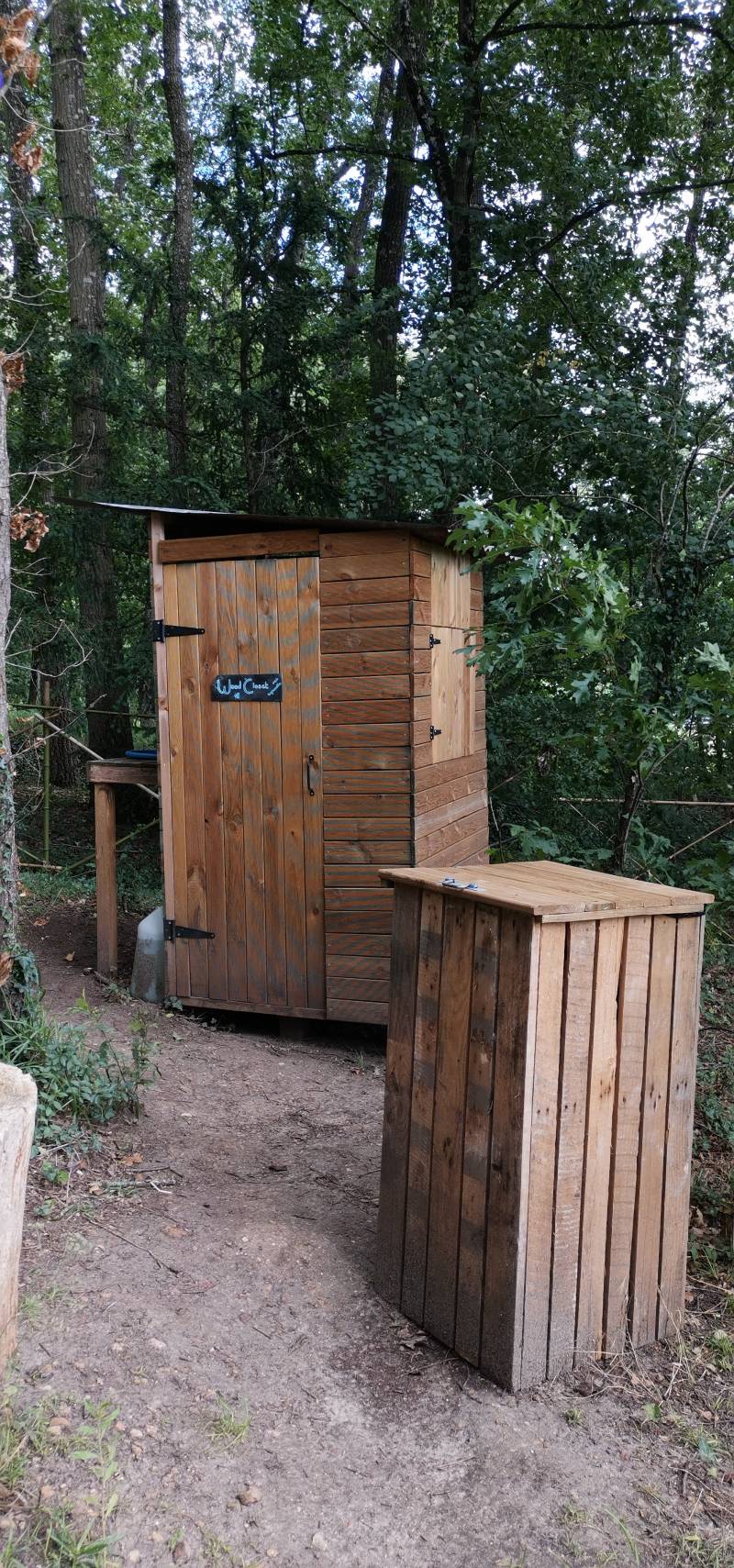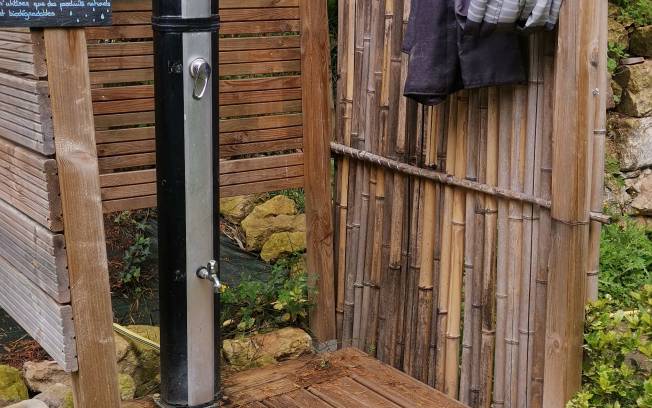 Vous avez une douche solaire à disposition ainsi que des toilettes sèches et un lavabo.
