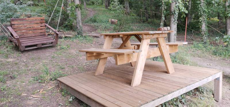 Il vous faudra monter sur le terrain au dessus de nos caves pour accéder à la forêt. Tous les emplacements sont à l'ombre des arbre, le terrain n'est pas plat mais nos emplacements sont travaillés pour l'etre.