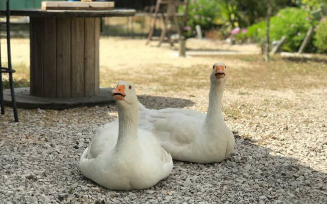 Plusieurs potagers et vergers, un poulailler, quelques animaux familiers et une grande piscine