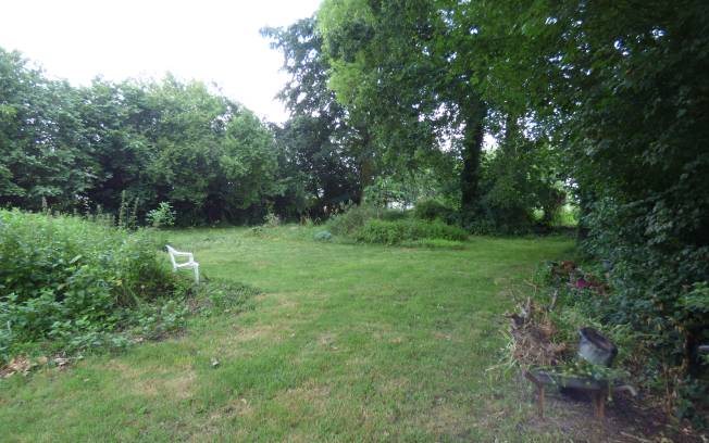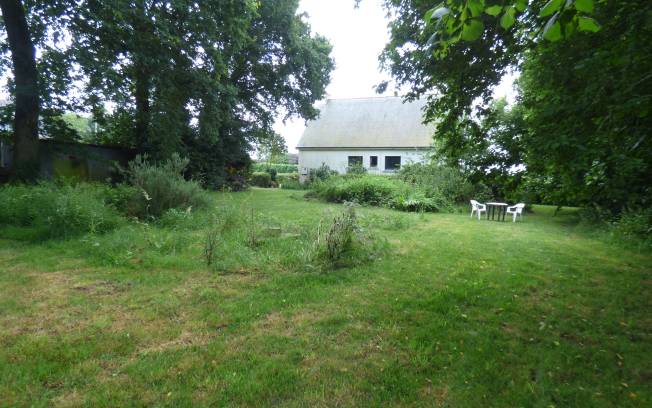 Un jardin à la campagne, entouré de nature.