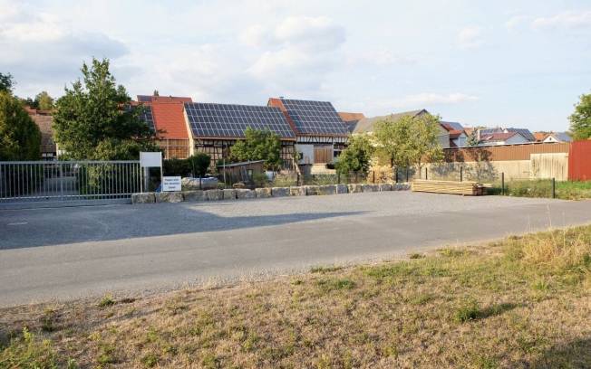L'emplacement se trouve derrière notre ferme restaurée vieille de 500 ans, sur une vaste surface empierrée, le long d'un chemin agricole calme (seuls les riverains sont autorisés, pas de trafic de transit). De l'autre côté du chemin se trouvent des prairies et des jardins pittoresques.