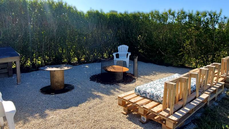 Ce très grand emplacement est facile d'accès et abrité par des haies avec accès aux sanitaires à 30 mètres, il y a une aire de jeux engazonnée retirée de la circulation pour vos enfants (foot, volley, basket), un espace brasero avec grilles de cuisson et pelles à pizzas, deux allées de pétanque , le tout à moins de 150 mètres de la plage