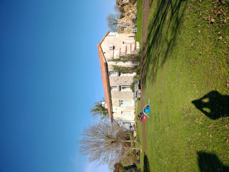 Nous avons acheté une maison en plein milieu de la campagne possèdent un grand jardin avec vue sur les champs et beaucoup de petits chemins aux alentours pour se balader.