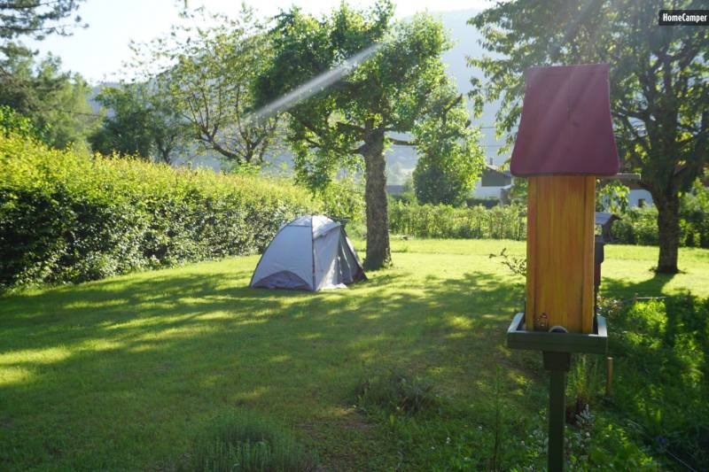 La totalité du jardin est à votre disponibilité. Plantez votre tente là ou vous en avez envie. Au pied des sapins ou sous le cerisier.