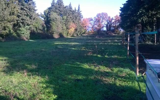 Je propose des emplacements sur un terrain agricole arboré, calme, sans vis à vis, plein Sud avec ombrage.