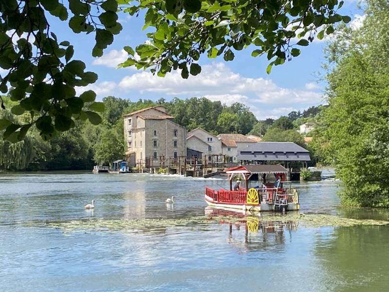 à 50 m du bord de la Charente, lieu de baignade, écluses, sur la Flow Vélo et le