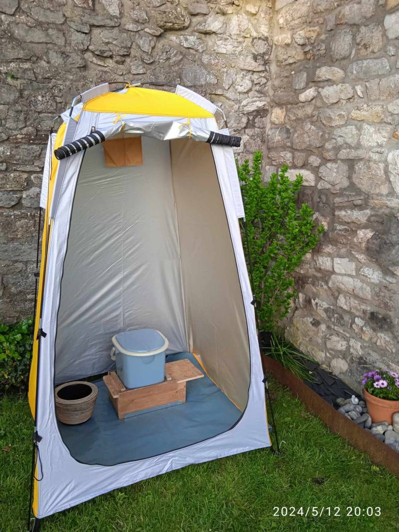 - Une tente sanitaire polyvalente équipées de toilettes sèches sera à votre disposition jour et nuit. Le papier wc devra être prévu par vos soins.