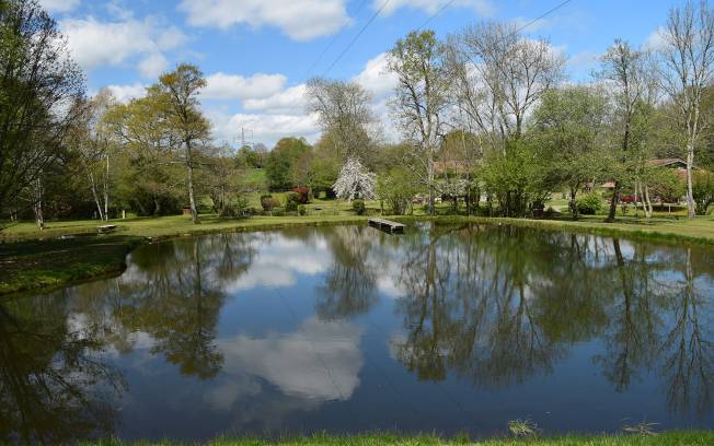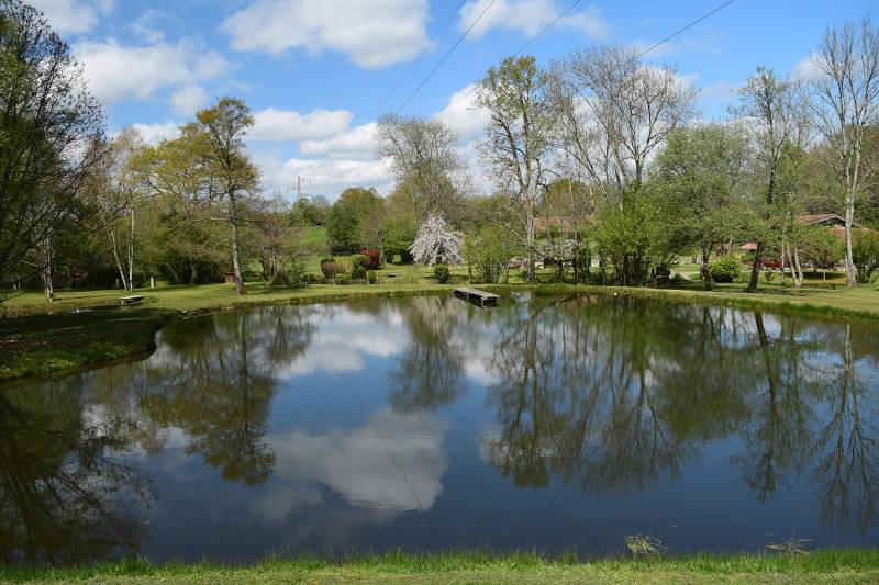 Nous vous accueillons sur notre terrain arboré de 2 ha, en pleine nature, au cœur duquel se niche un petit lac. La propriété est également traversée par une rivière. À l’écart du village (accès par un chemin communal de 500 mètres), nous n'avons pas de voisins directs. Vous serez entouré de bois et de prairies dans un environnement naturel calme et relaxant.