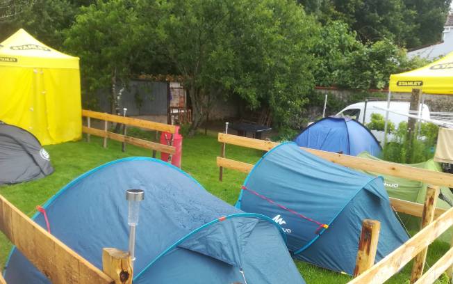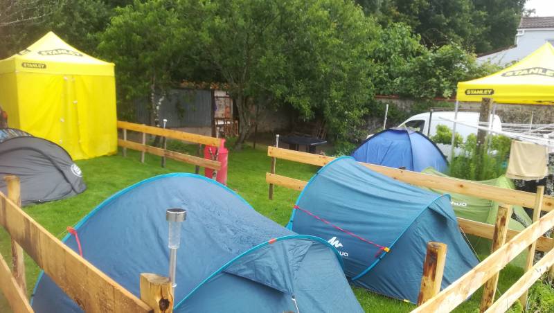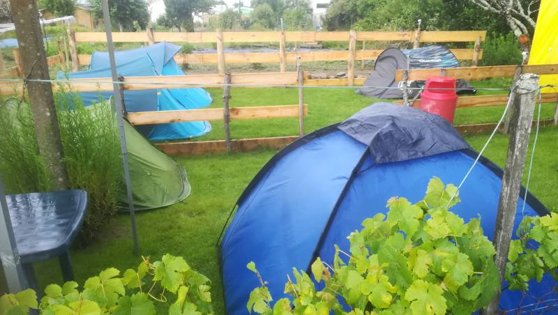 En face de notre maison, nous vous proposons un coin de verdure dans un petit village vendéen pour poser votre tente, au milieu des jardins potagers et vergers. Hangar fermé pour vélos et motos.