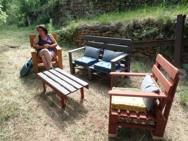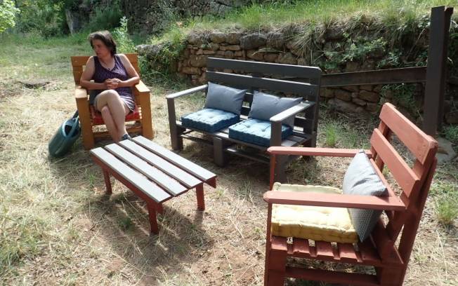 Le confort est simpliste, sans électricité, avec un seul robinet d'eau potable, de l'ombre, une grande table et un barbecue et depuis cette année un salon palette.