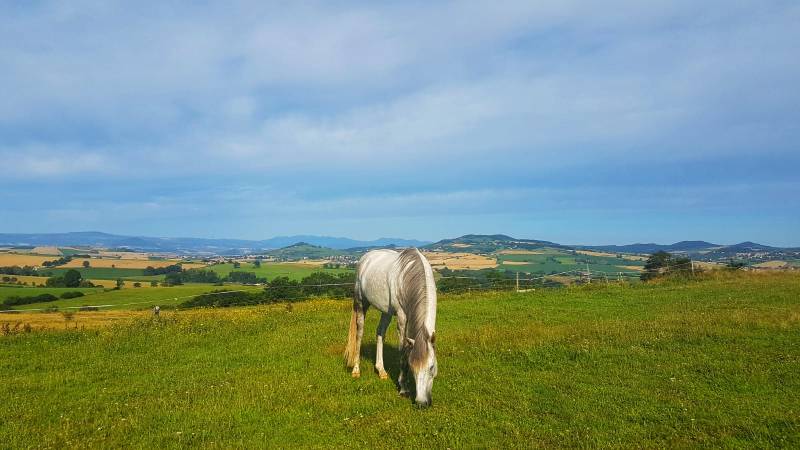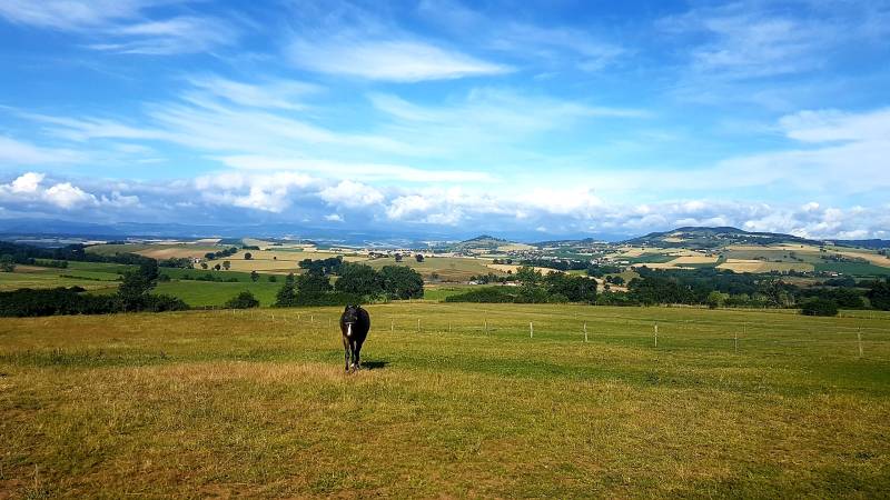Un espace de verdure avec les animaux et la nature. Un lieu calme et convivial. Magnifique vue sur la chaine du Sancy et ses villages aux alentours.