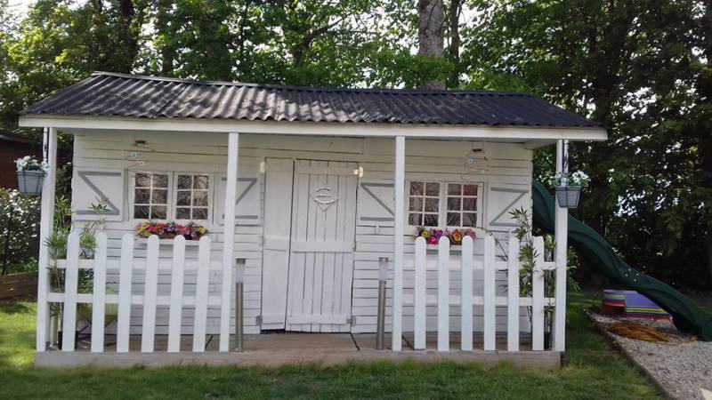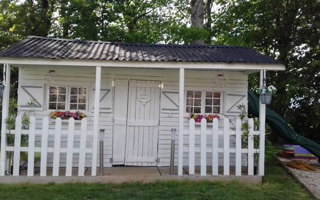 ou vous pouvez aussi dormir dans la cabane de jeux que j'ai fabriqué en palettes (matelas mousses comme pour la tente, seront mis au sol, mes filles y dorment souvent pdt des soirées pyjamas entre copines).