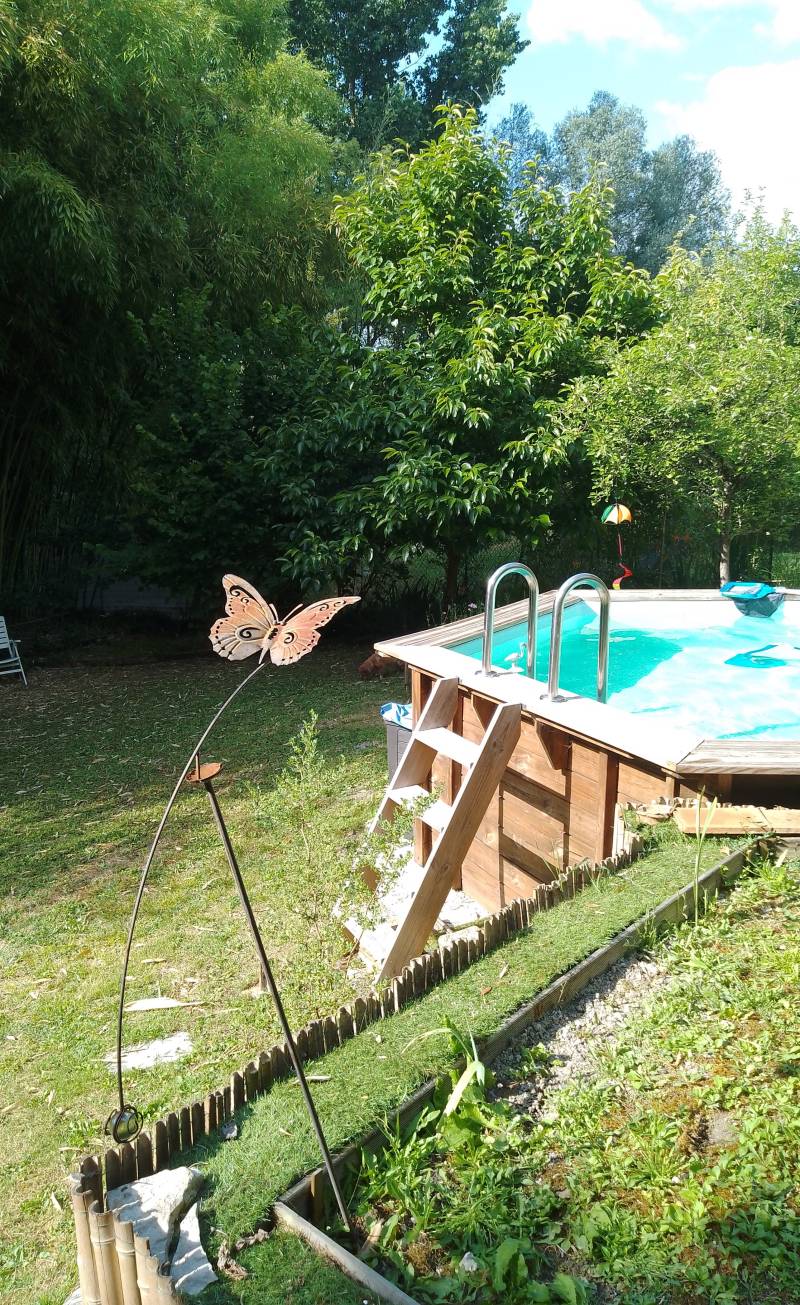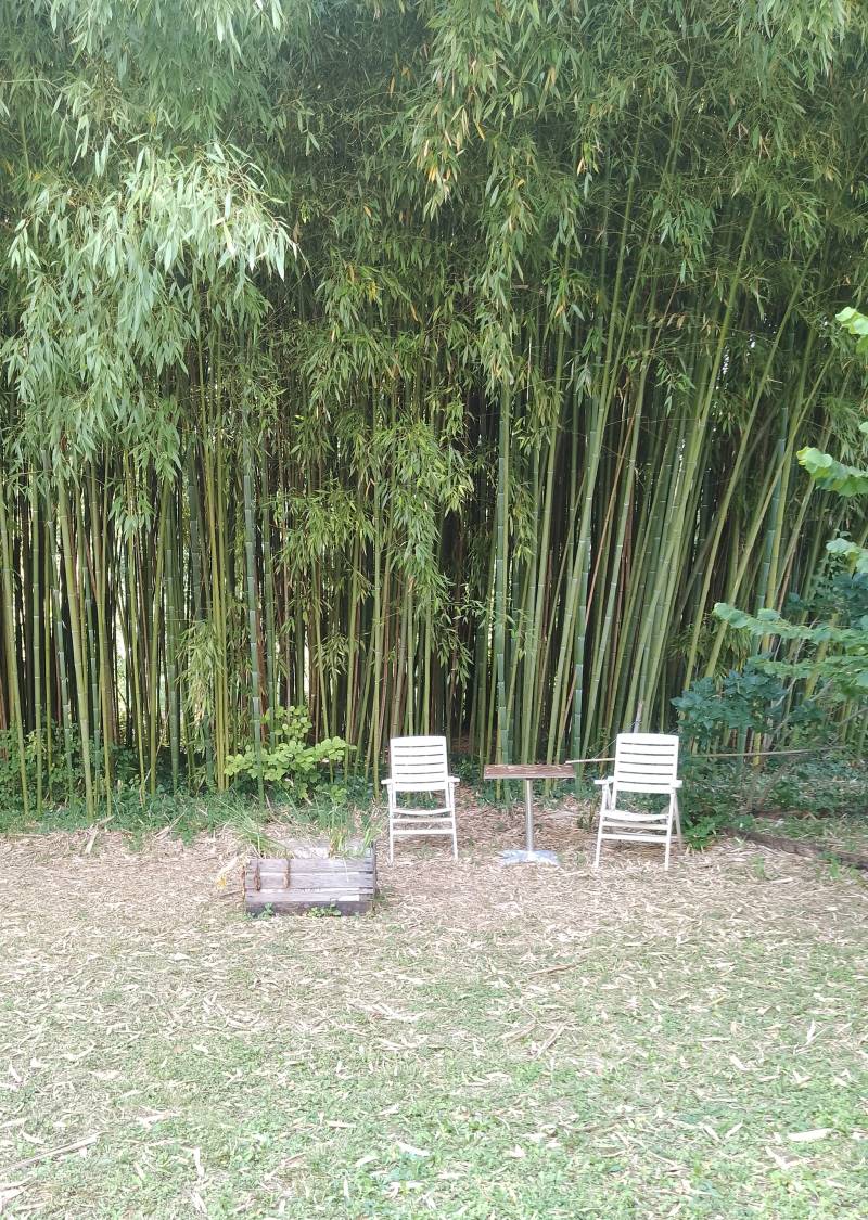 Dans beau jardin atypique, côtoyé par la verdure de la végétation qui y est abondante. Vous y entendrez le vent dans notre petite bambouseraie, moment de repos et de relaxation.