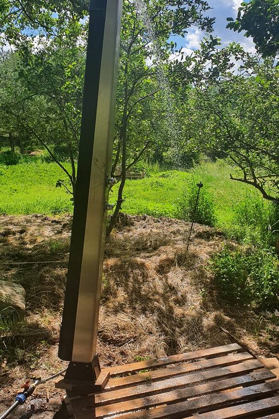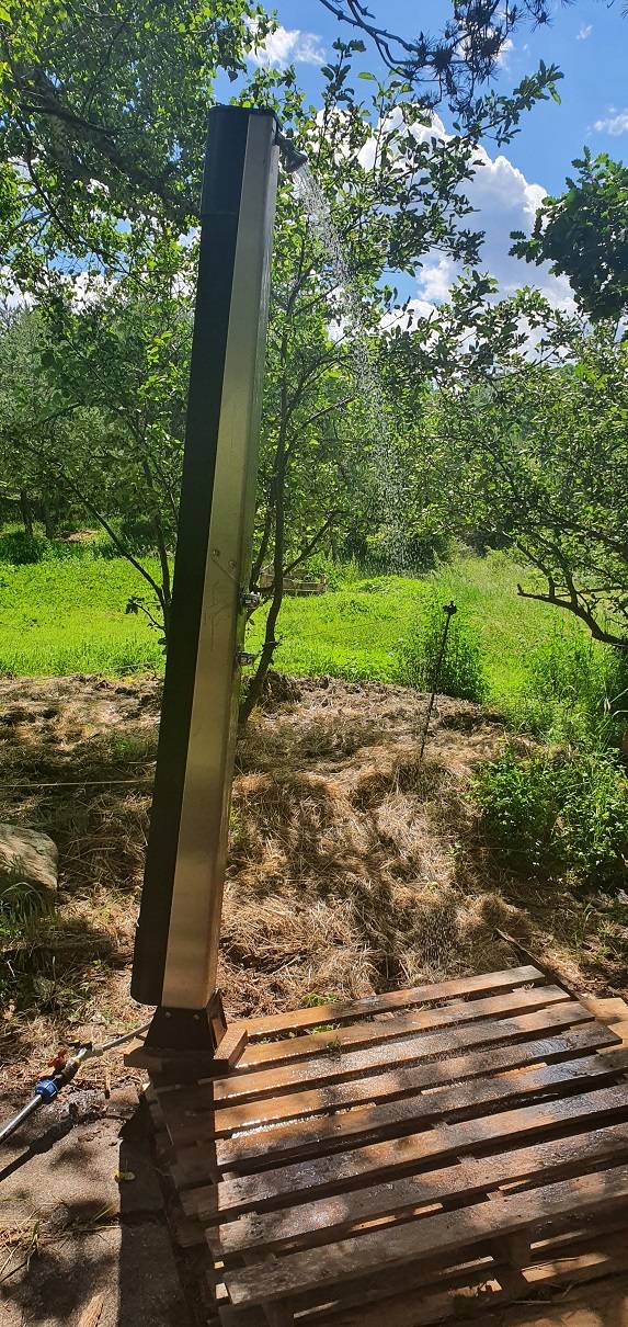 Des toilettes sèches et douche solaire et chauffe-eau à disposition.