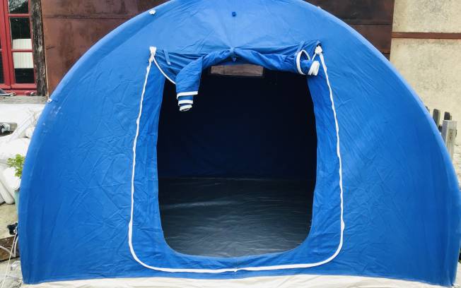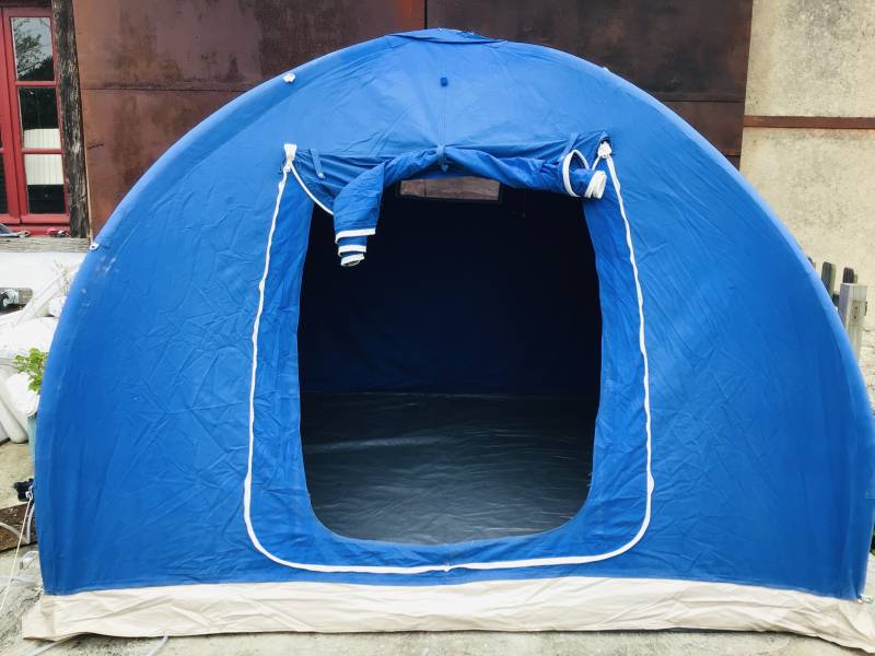 possibilité de profiter d'une tente igloo de 230 X 230 X 180 équipe d'un lit de camp d'un matelas , couverture . Electricité et wifi . service payant 15 € / nuit .