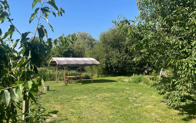 - une tonnelle avec une table et des bancs, pour partager des repas et des temps festifs.