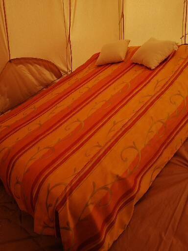 vous disposez d'un tipi pouvant accueillir 3 personnes. de matelas gonflables (haut) fournis avec un drap housse , vous apportez couvertures draps et oreillers .