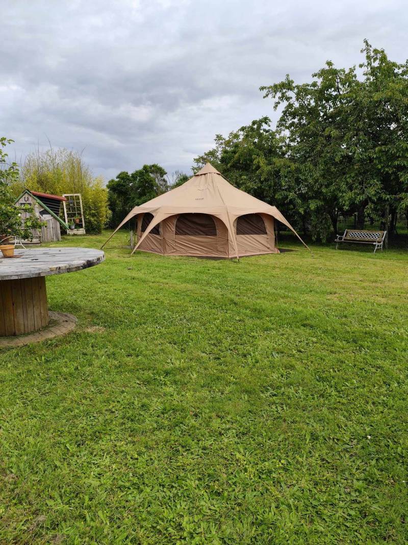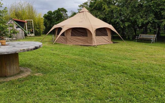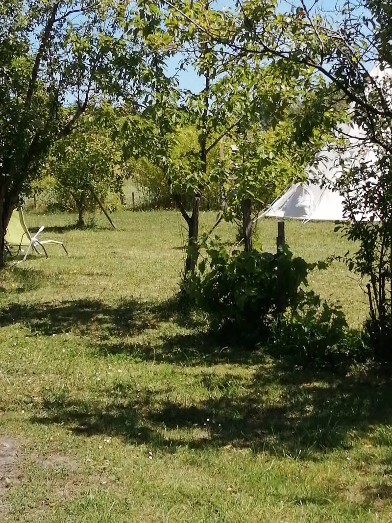 Vous êtes sur un terrain privé , clôturé et arborer de fruitiers . vous partagez le terrain avec d autre campeurs et des poules .ainsi que d autres animaux chez les voisins. les chiens sont autorisés sur le terrain mais pas dans la yourte.