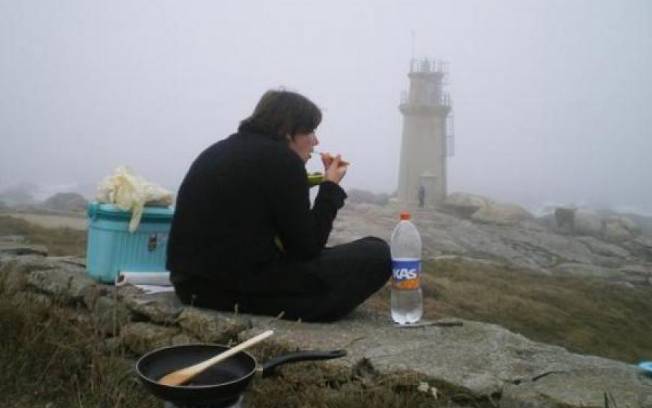 Sur la pointe de Muxia, au pied d'une grande église et d'un phare.