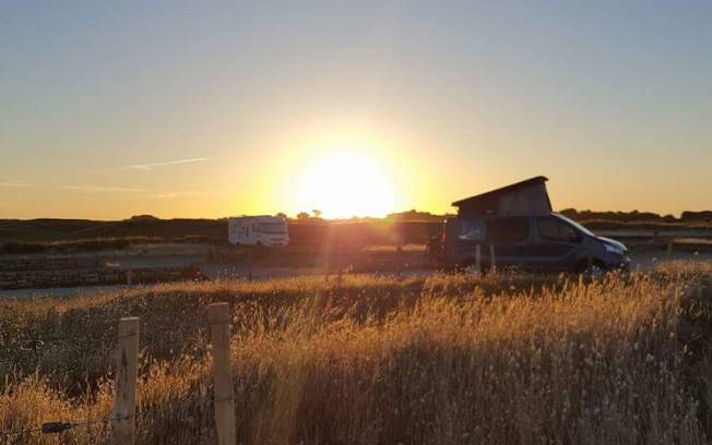 Endroit très joli et très agréable au réveil avec le soleil qui nous accompagne très tôt avec le bruit des vagues de la mer. Nous nous somme installés parmi les dunes de sorte à être invisible depuis la petite route et les parkings avec notre tente basse. Endroit fréquenté surtout par les locaux du soir, souvent une patrouille de police qui fait une vérification de la plage et des parkings le matin de manière routinière, mais s'attarde beaucoup plus sur la plage naturiste située à quelques kilomètres de l'endroit. Dans l'ensemble très contente et les toilettes étaient bien présentes.