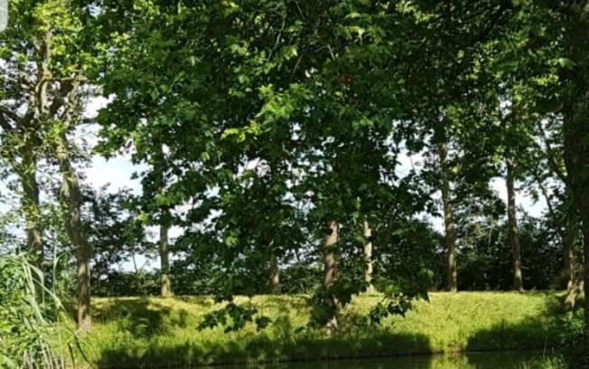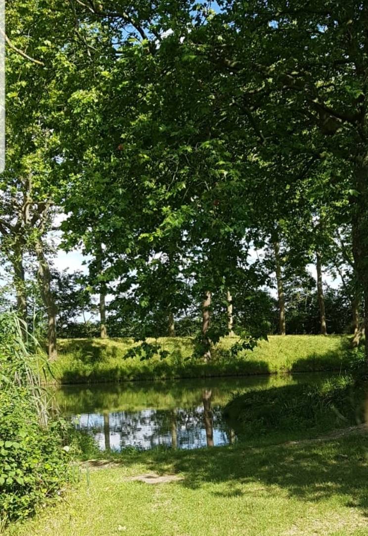Bord de rivière, terrain avec de l'herbe, mi-soleil mi-ombre, possibilité d'accéder en voiture jusqu'à la rivière, assez calme.