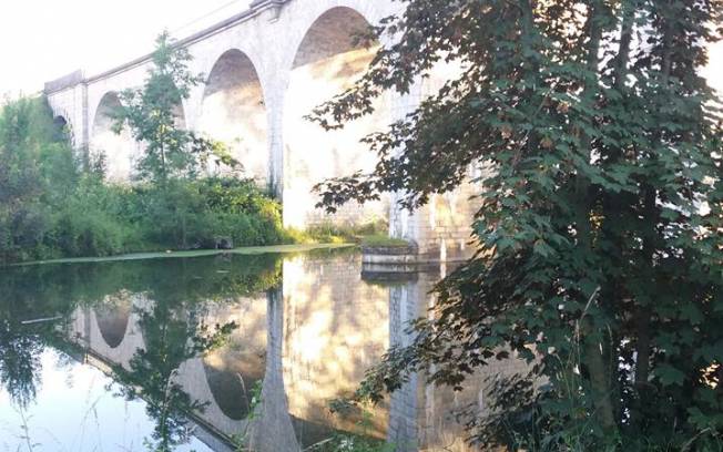 Pour trouver le coin de camping sauvage, suivre le pont en bois puis le chemin de pêche passant sous le pont en pierre.