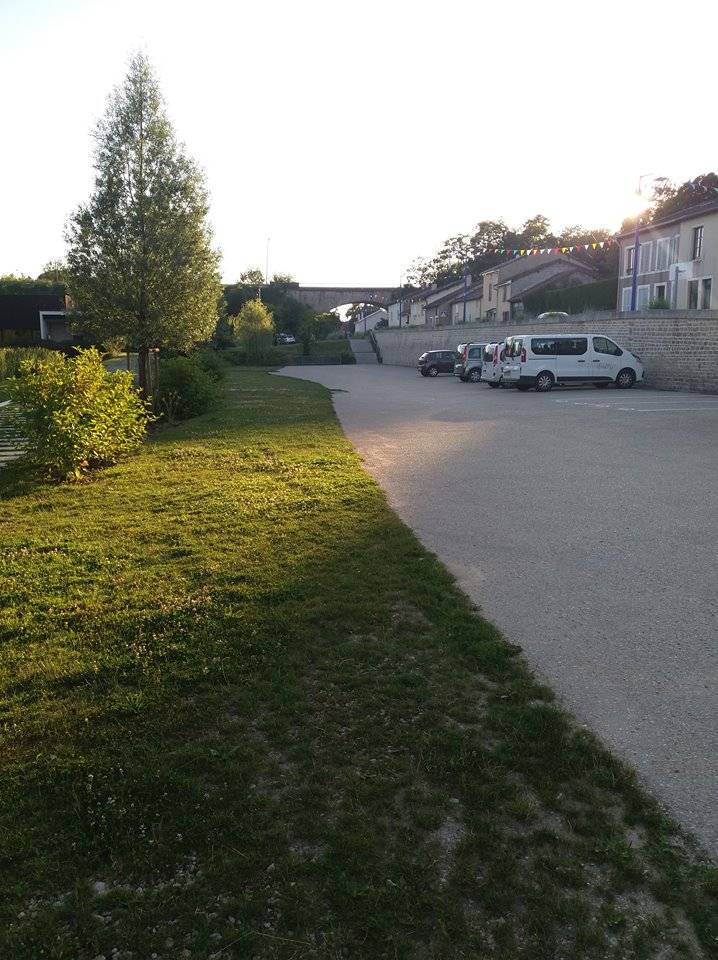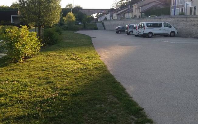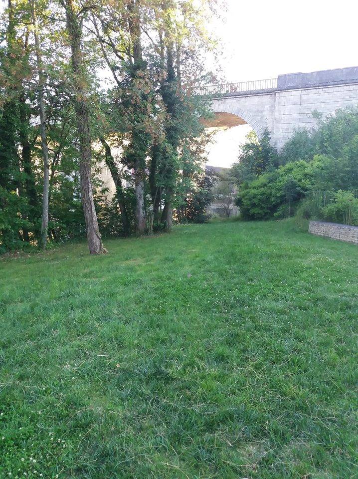 Petit coins de verdure en plein centre d'un petit village de campagne sous le pont. A 40 mètres de l'airede camping car en terre situé à coté de la riviere, du lavoir, et du pont. Magasin Carrefour dans la même rue. Borne de voiture électrique sur l'aire de camping car.