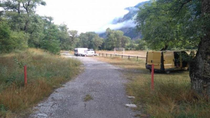 Juste le long de la Durance, parking du terrain de foot municipal. Pas de rglementation affiche, mais deux poteaux l'entre qui laissent penser qu'une chane peut y tre installe. Terrain plat et stabilis (pas de risque de s'enliser), ombrag, assez grand. Aucune commodit si ce n'est la rivire ;-). Bon bivouac !