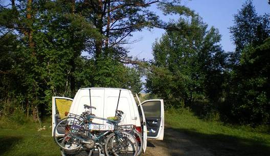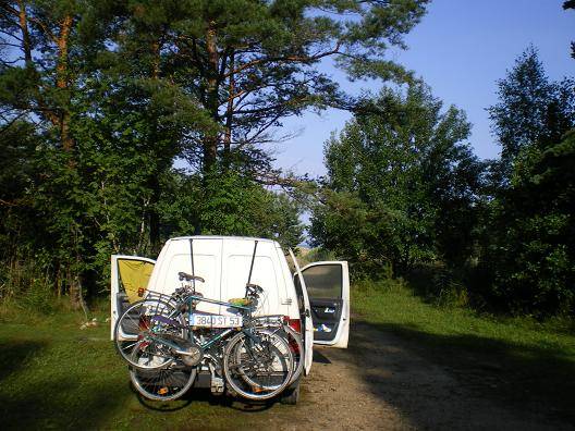 Super site pour bivouacquer, derrière la dune qui sépare de la plage, sous les arbres .. (on voit la dune sur la photo, et la mer Baltique derrière)