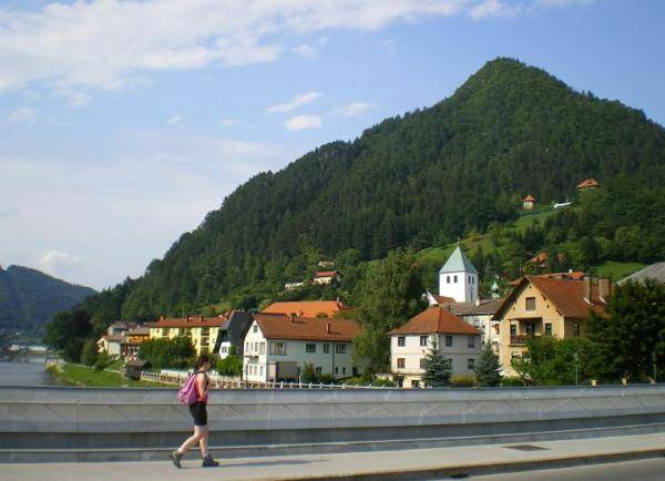 Un parking très utilisé à Lasko au bord d'un petit parc qui borde la rivière. C'est le parking d'un centre de soin mais il est à priori gratuit (on ne nous a rien dit en tout cas) ...