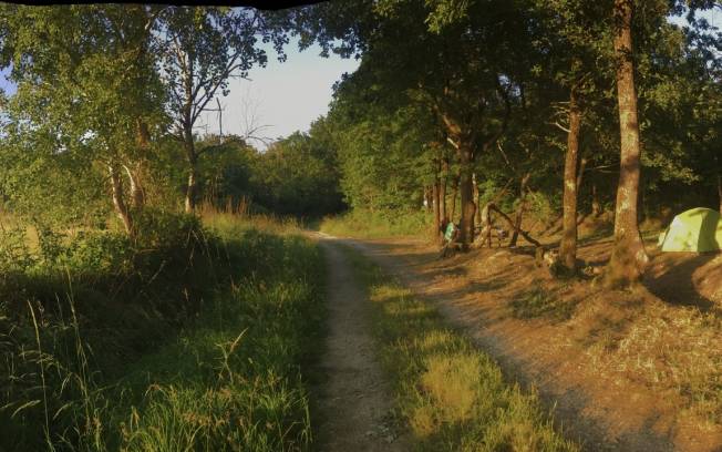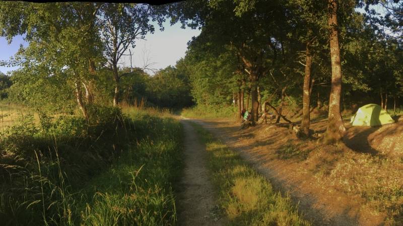 Endroit parfait pour poser sa tente une nuit. À l’orée du bois, le champs d’en face pour profiter du coucher de soleil. Une table de pic nic vous attend. Que demander de mieux ? Seulement 6 passages sur la soirée et le matin : 2 marcheurs, 2 cyclistes et 2 tracteurs.