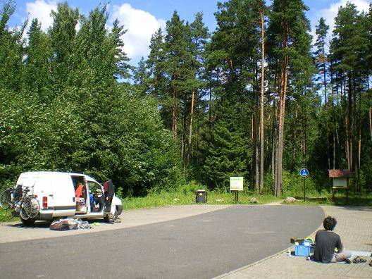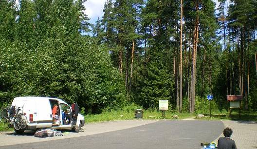 Au bout de Sigulda, à côté du cimetière, un parking très bien, très tranquille, protégé des arbres (pour l'ombre du matin), et à l'entrée d'un sentier : Excellent !
