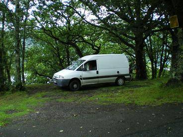De petits emplacements sont disponibles dans la forêt qui borde le Loch Earn ..